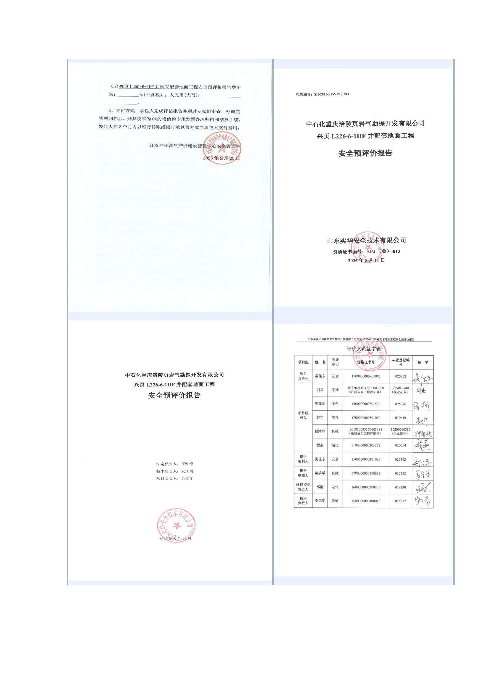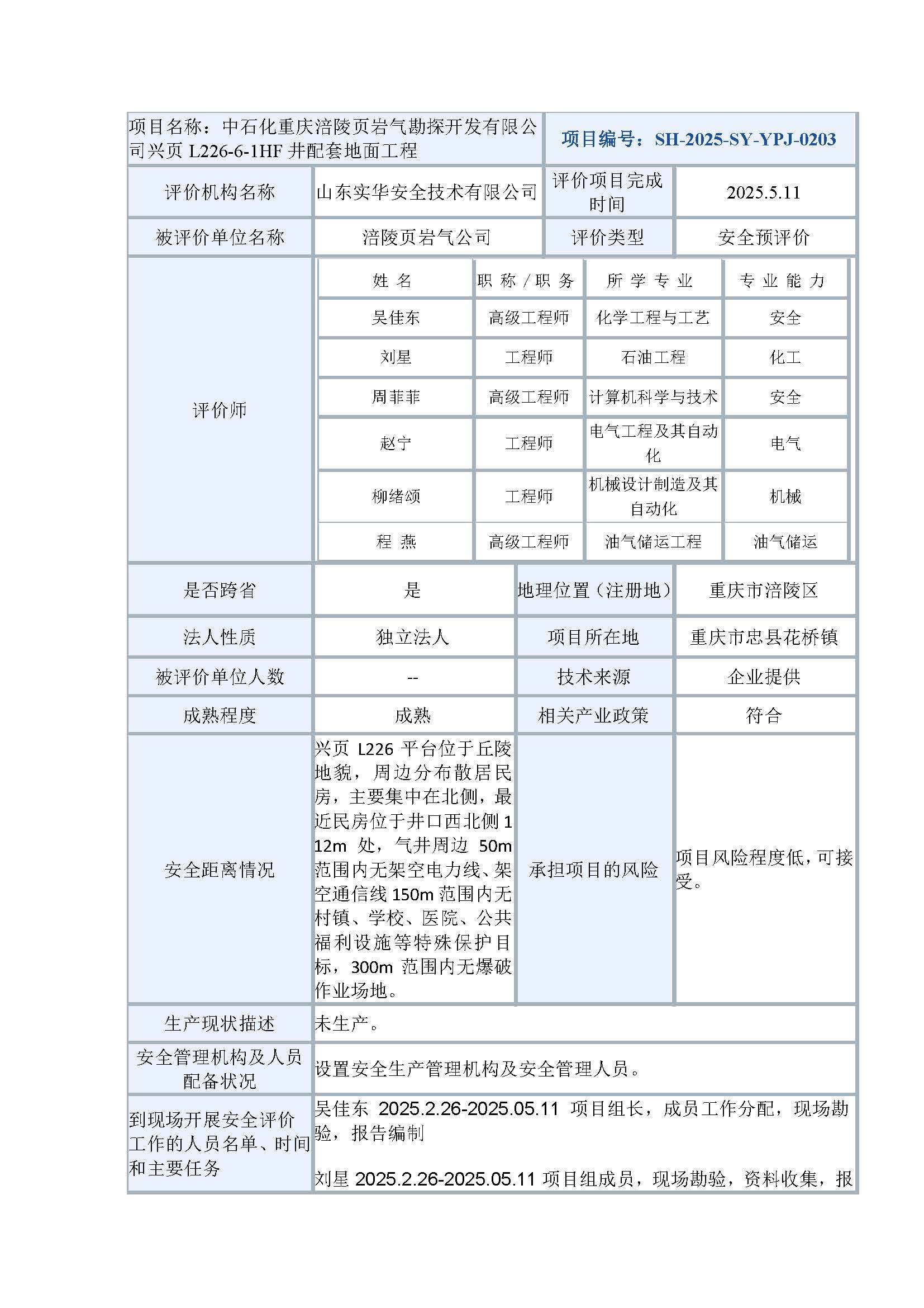 中石化重慶涪陵頁巖氣勘探開發(fā)有限公司興頁L226-6-1HF井配套地面工程安全預(yù)評價