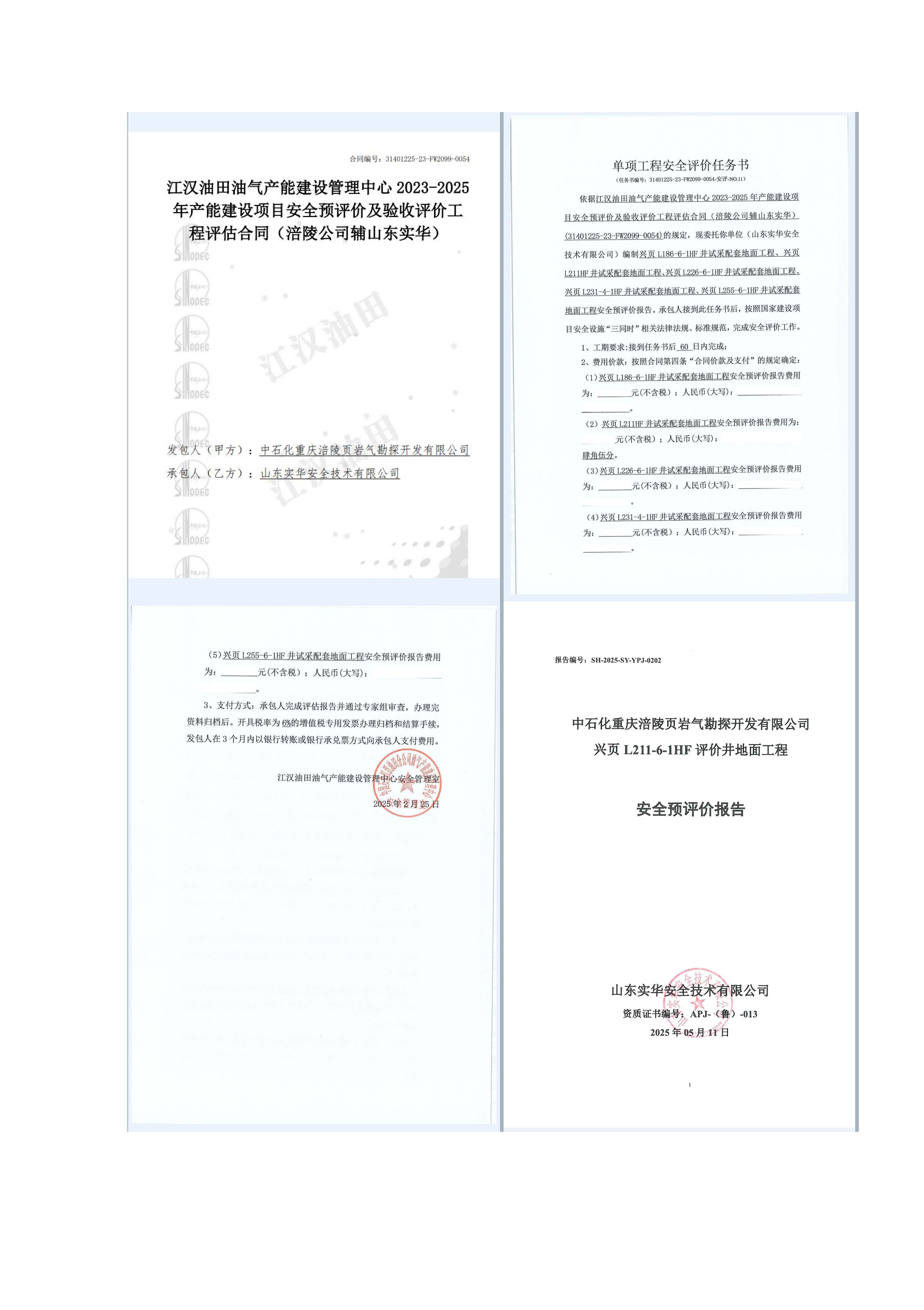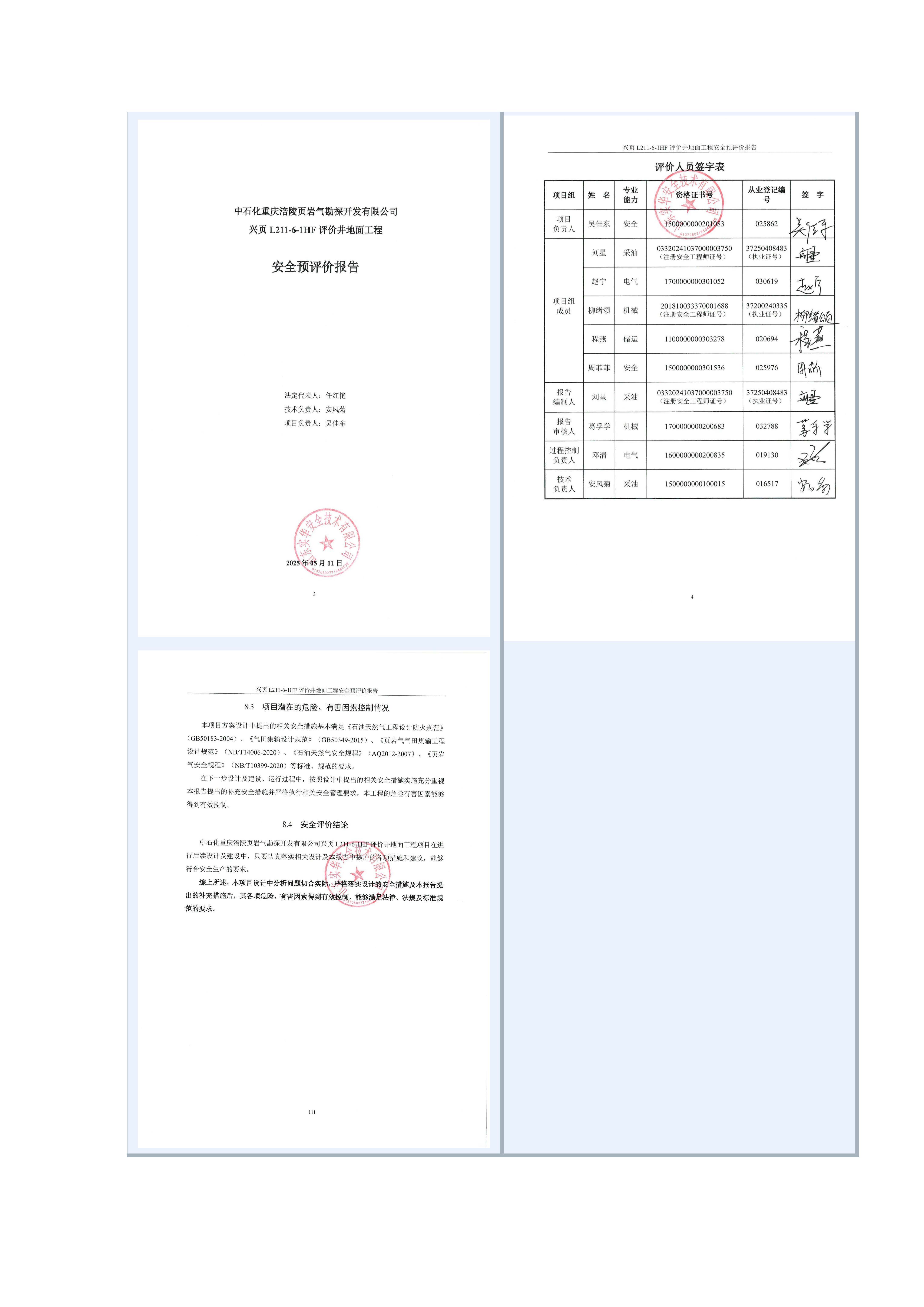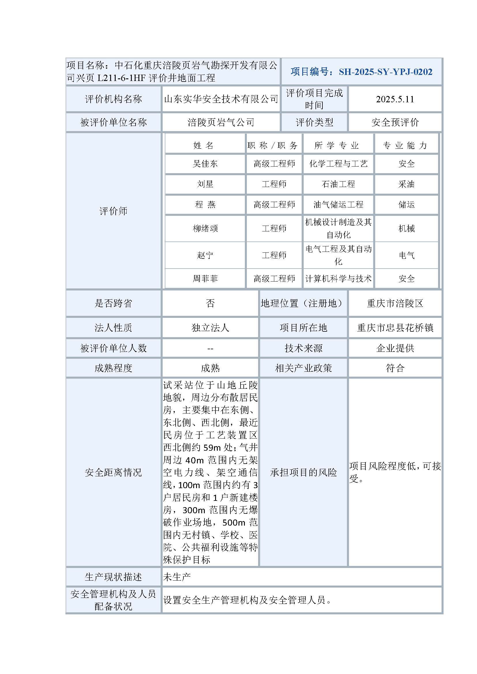 中石化重慶涪陵頁巖氣勘探開發(fā)有限公司興頁L211-6-1HF評價井地面工程安全預評價