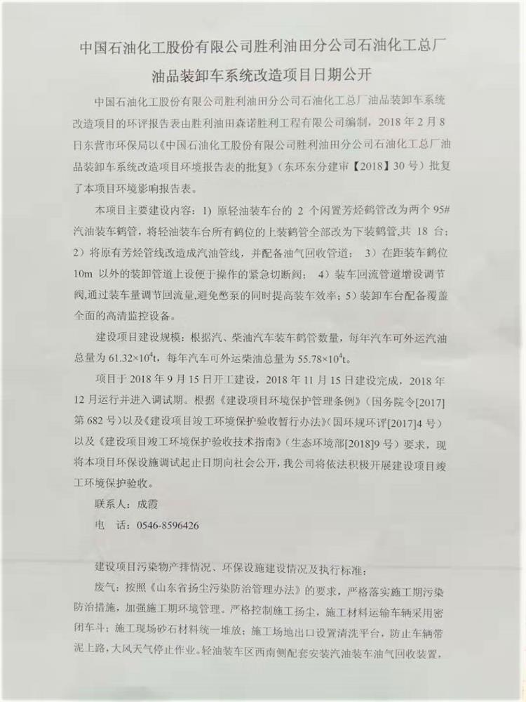 中國(guó)石油化工股份有限公司勝利油田分公司石油化工總廠油品裝卸車系統(tǒng)改造項(xiàng)目日期公開