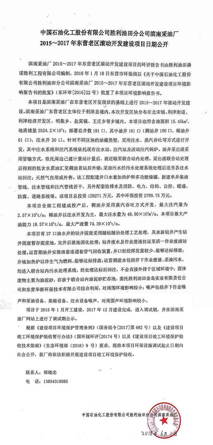 中國石油化工股份有限公司勝利油田分公司濱南采油廠2015~2017年東營老區(qū)滾動(dòng)開發(fā)建設(shè)項(xiàng)目日期公開